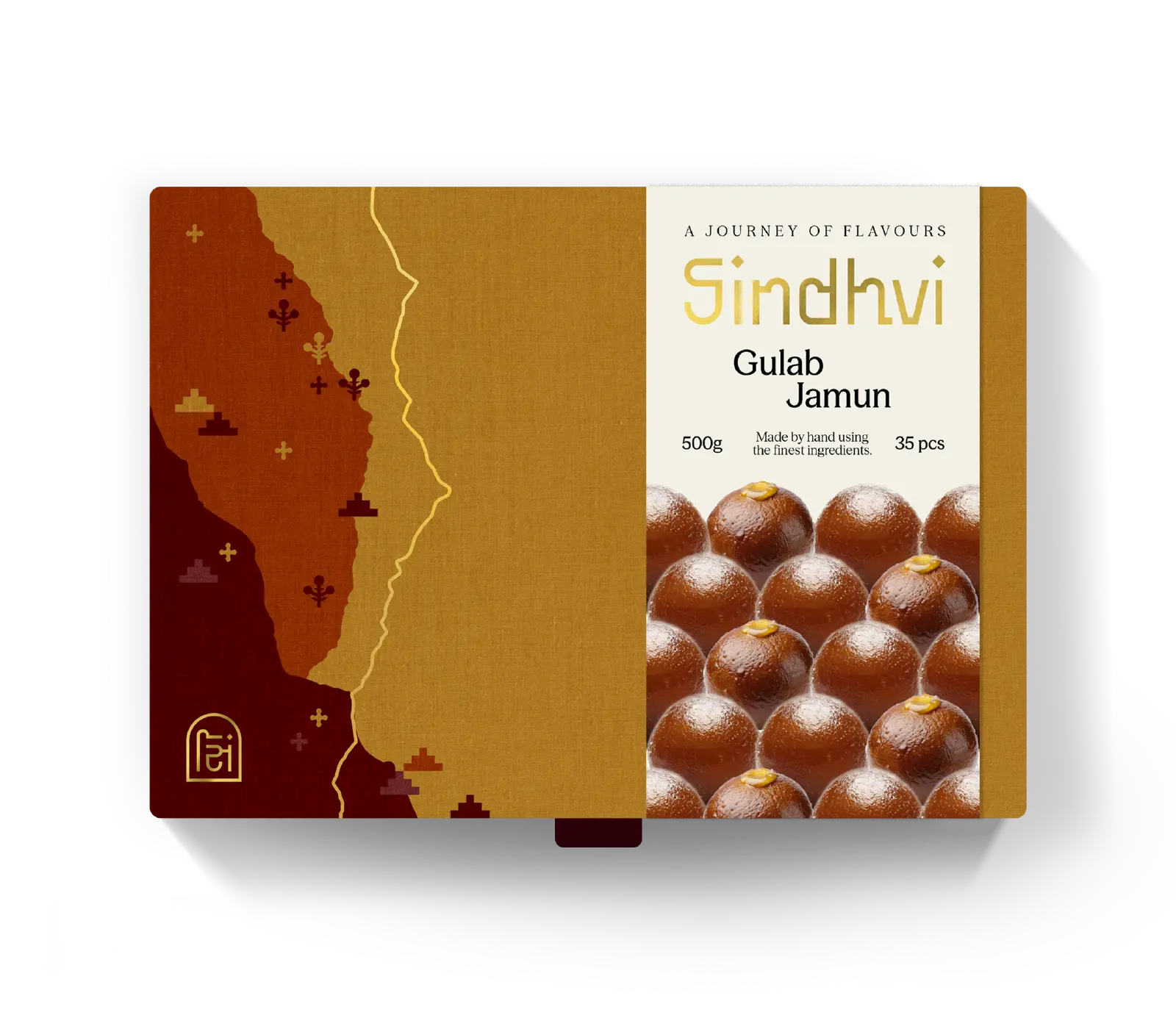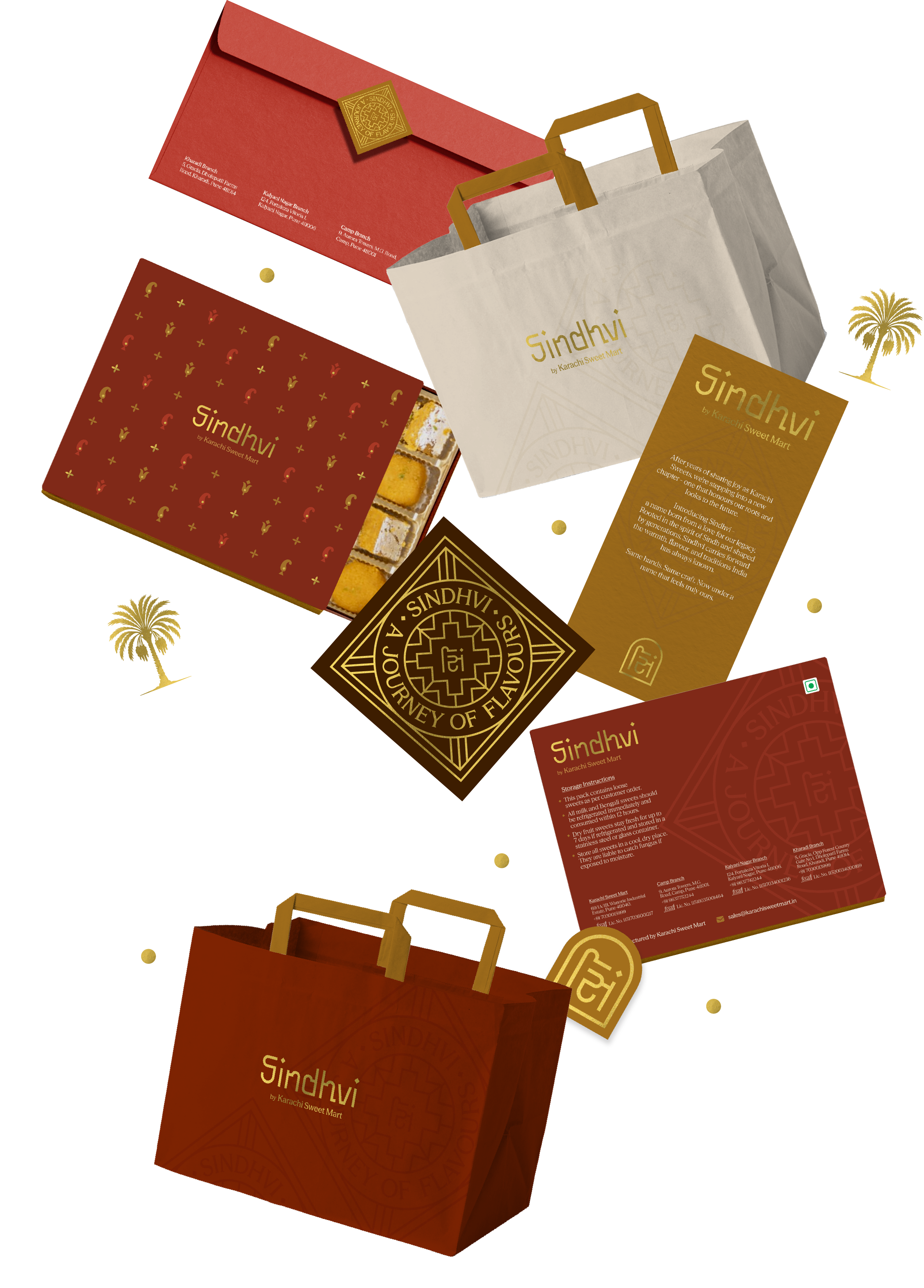The primary wordmark is custom-designed to be progressive, elegant, and distinctly Indian. The bowls in the logomark take inspiration from the arches found in Sindhi architecture. Its overall form draws from Indian scripts of the north-western region such as Devanagari, Gujarati, Gurumukhi, and Khudabadi.